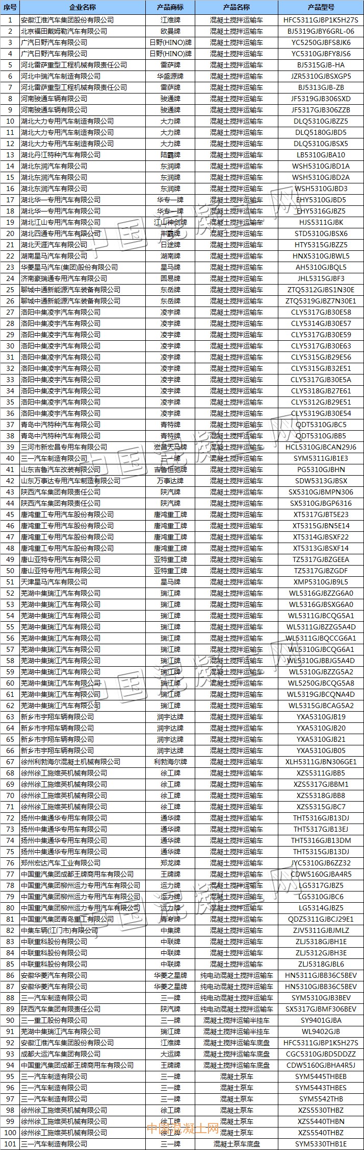 第334批混凝土機(jī)械類新產(chǎn)品公示名單
